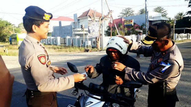 “Kalau kelengkapan berkendara lengkap, hanya saja cara mengenakan helem yang salah sehingga kami berikan arahan dan memperbaiki helemnya,” kata Samurai Anata