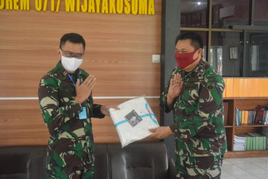 “APD ini, sebagai perlengkapan standart tenaga kesehatan guna mengurangi resiko terpapar Covid-19 ketika berhubungan langsung dengan pasien, semoga bermanfaat,” pungkasnya.Penrem 071/Wk