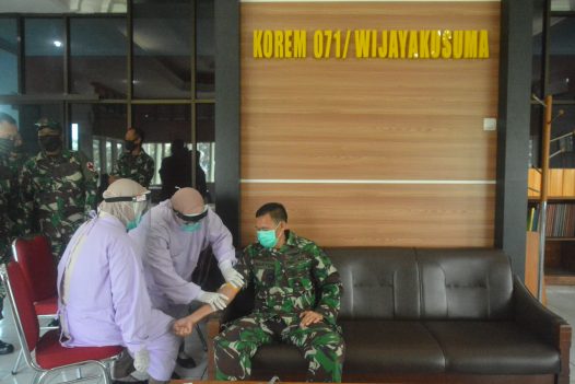 BANYUMAS, RRN– Dalam rangka mengantisipasi penyebaran Covid-19 di lingkungannya, Danrem 071/Wijayakusuma Kolonel Kav Dani Wardhana, S.Sos., M.M., M.Han., beserta Perwira Staf melaksanakan Rapid Test di Makorem, Senin (4/5/2020).