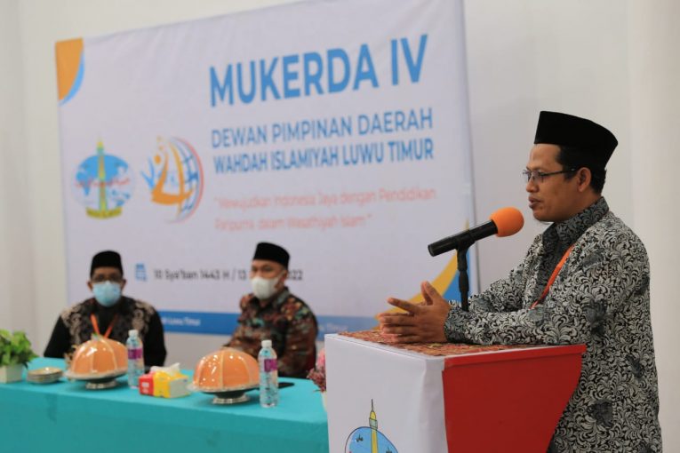 LUTIM, RRN – Bupati Luwu Timur, H. Budiman didampingi Ketua DPD Wahdah Islamiyah (WI) Kabupaten Luwu Timur, Ustad Budirman Ali menghadiri Acara Musyawarah Kerja Daerah (Mukerda) IV Dewan Pengurus Daerah (DPD) Wahdah Islamiyah Luwu Timur yang diselenggarakan oleh pengurus DPD Wahdah Islamiyah Kabupaten Luwu Timur bertempat di Aula Kantor Perpustakaan dan Arsip Daerah Lutim. Minggu (13/03/2022) sore.