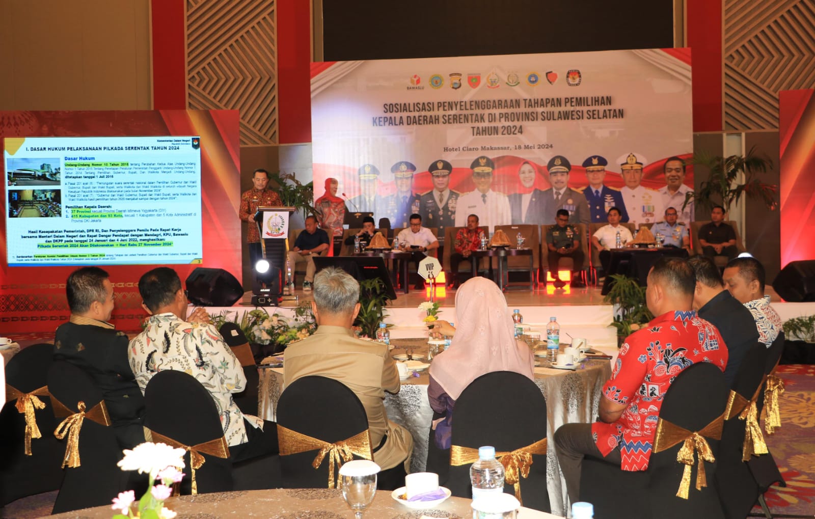 Sosialisasi yang berlangsung di Ballroom Sandeq A, Hotel Claro Makassar dibuka oleh Kepala Badan Strategi Kebijakan Dalam Negeri Kementerian Dalam Negeri, Dr. Yusharto Huntoyungo.
