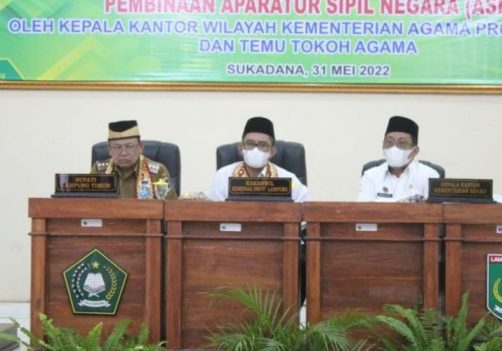 LAMPUNG TIMUR, RRN – Aula Kantor Kemenag Kabupaten Lampung Timur, Selasa (31 Mei 2022)Acara tersebut dihadiri pula oleh, Kepala Kantor Wilayah Kemenag Provinsi Lampung, Puji Raharjo, Kepala Kemenag Kabupaten Lampung Timur, Indrajaya serta Kepala Badan Pengelolaan Keuangan dan Aset Daerah, Sukismanto.