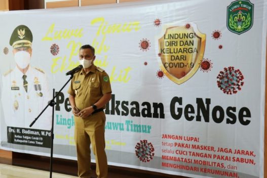 LUTIM, RRN—Bupati Luwu Timur, H. Budiman mengingatkan para kepala OPD lingkup Pemerintah Kabupaten Luwu Timur agar rajin melaksanakan Shalat Dhuha setiap hari. Hal tersebut disampaikan Bupati dalam sambutannya pada acara Pemeriksaan Covid19 dengan menggunakan alat GeNose bagi ASN Lutim, di Kantor Bupati Luwu Timur, Selasa (18/05/2021).