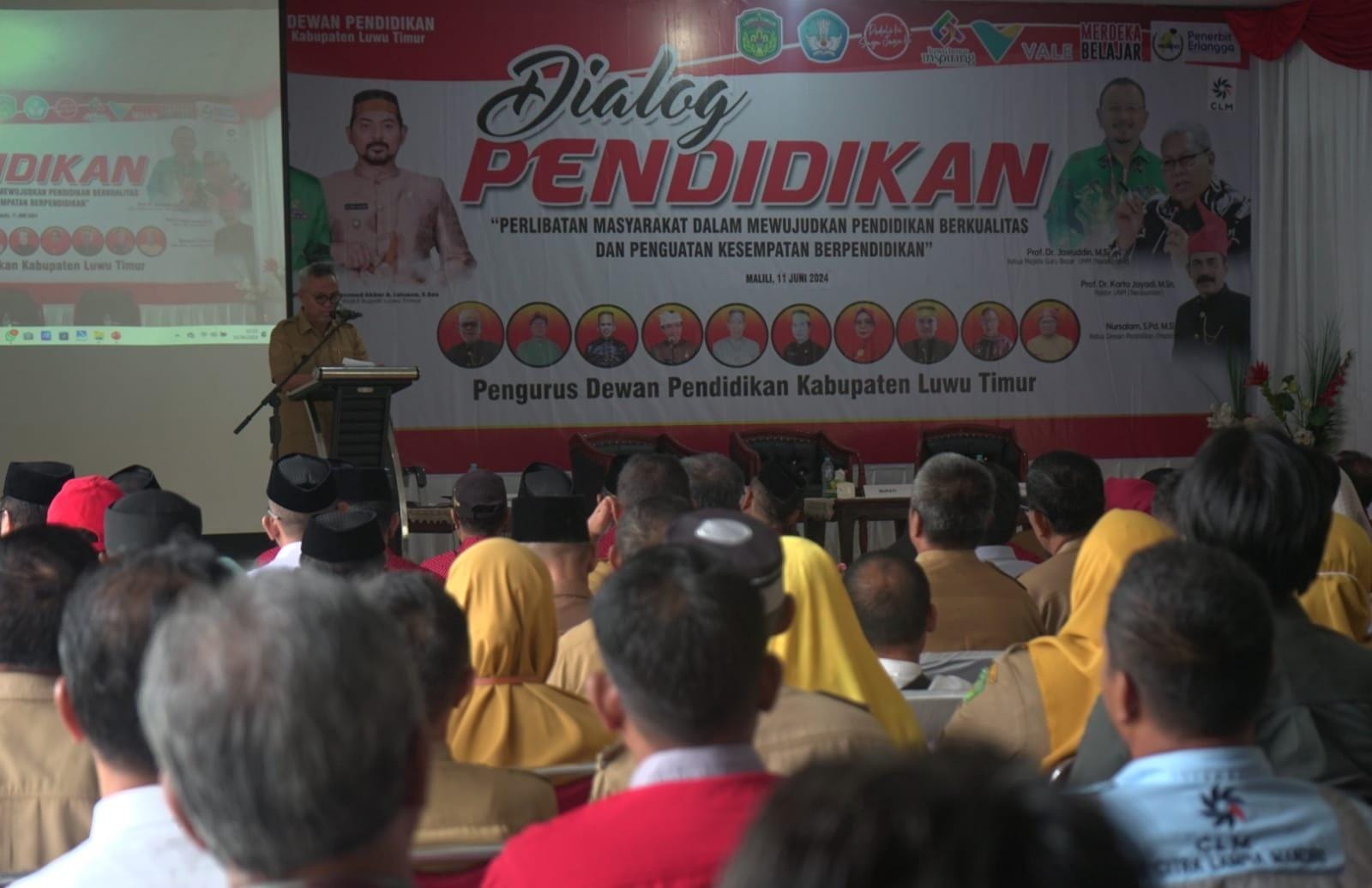 Turut hadir Perwakilan Unsur Forkopimda Lutim, Anggota DPRD Lutim, Kadis Dikbud Lutim, Camat Malili, Kepala Kemenag Lutim, Ketua Dewan Pendidikan beserta jajaran, para Kepala dan Ketua Sekolah Paud/TK,SD,SMP hingga SMA se Kabupaten Luwu Timur, Perwakilan Management PT. Vale, dan Perwakilan PT. CLM serta Peserta Dialog Pendidikan.