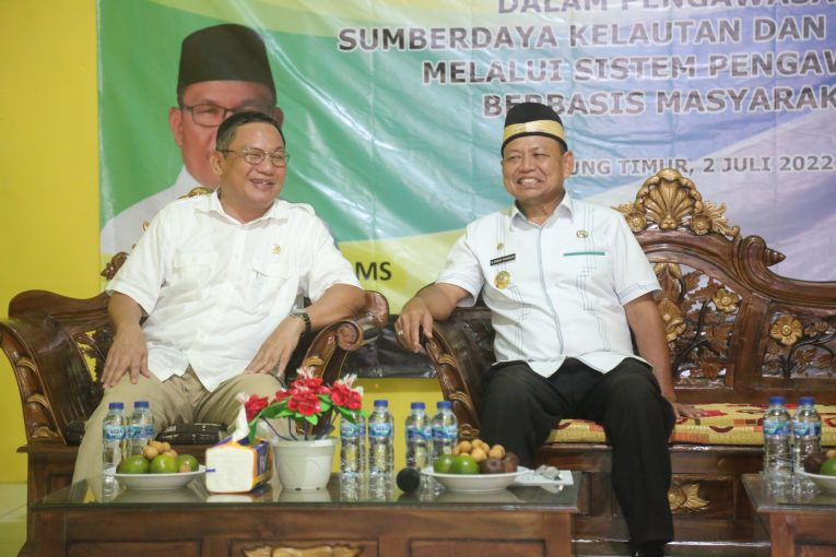LAMPUNG TIMUR, RRN – Bupati Lampung Timur, M. Dawam Rahardjo Memberi Sambutan Dalam Acara Sosialisasi Penguatan Peran Masyarakat Dalam Pengawasan SDKP Melalui Sistem Pengawasan Berbasis Masyarakat di Balai Desa Margasari, Sabtu (02 Juli 2022)