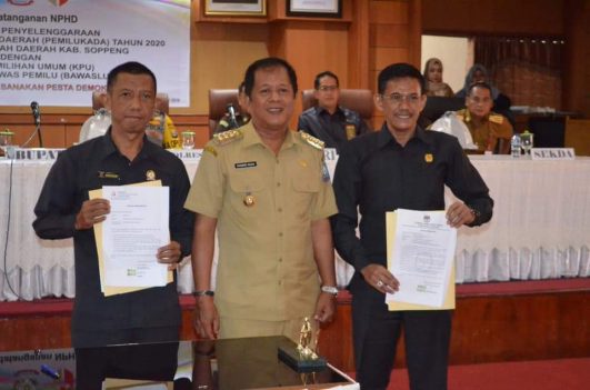 Sementara itu penandatanganan NPHD dilakukan oleh Bupati Soppeng, Ketua KPU dan Ketua Bawaslu Soppeng disaksikan oleh Ketua DPRD Soppeng, para Kepala SKPD, para Kabag Setda, Para Camat, dan undangan lainnya.