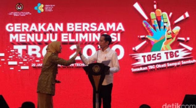 TOSS yang dimaksud adalah Temukan Obati Sampai Sembuh TBC. Para hadirin turut mengikuti salam TOSS dari Jokowi.