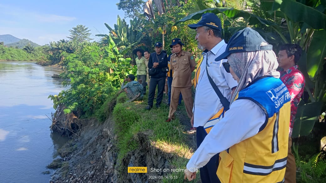 LUTIM, RRN – Kepala Balai Besar Wilayah Sungai (BBWS) Pompengan – Jeneberang, Dr. Suryadarma Hasyim, didampingi Camat Tomoni Timur, Yulius, Kadis PUPR, Syahmuddin, Kepala Desa Alam Buana, Imade Redo, Pj. Kades Cendana Hitam Timur, Riny G. Rusli, serta Kabid Sumber Daya Air Dinas PUPR, Syahrir, melakukan peninjauan langsung terhadap tanggul pengaman di dua desa yakni Desa Alam Buana dan Desa Cendana Hitam Timur yang hampir jebol akibat derasnya arus Sungai Kalaena, Selasa (14/05/2024).
