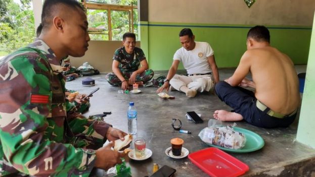 PAMEKASAN, RRN – Sehari bekerja pasti rasa capek,penat akan ada namun di sela – sela istirahat siang hari ini Satgas TMMD ke-112 Kodim 0826 Pamekasan, Pratu mulyadi duduk bersama warga melaksanan komunikasi sosial (Komsos), mereka mulai pembahasan kegiatan di lingkungan baik yang berhubungan dengan pelaksanaan TMMD atau hal masalah pribadi sehingga tampak keakrapan diantara mereka, Kamis (30/09/21).