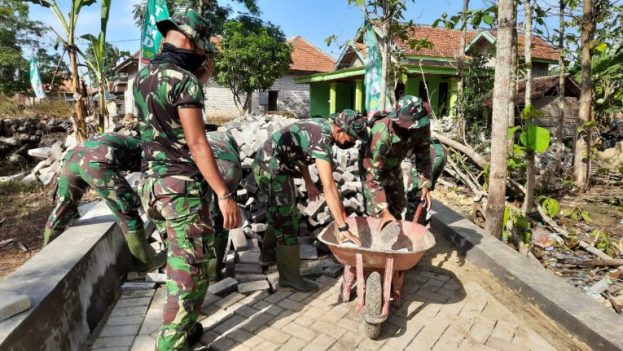 PAMEKASAN, RRN–Dalam mewujudkan Kesejahteraan Rakyat Melalui TMMD ke – 112 Ta. 2021 Jajaran TNI Angkatan Darat khususnya Kodim 0826/Pamekasan tetap melaksanakan program TNI Manunggal Membangun Desa (TMMD) yang tergelar di Desa Rangperang daya Kec. Proppo Kab. Pamekasan karena dianggap desa tersebut masih banyak memerlukan perbaikan dan pembangunan secara fisik baik jalan dan pemukiman warganya”, Senin (27/09/21).