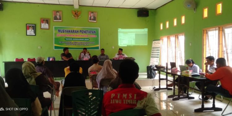 LUTIM, RRN – Musyawarah penetapan anggaran pendapatan dan belanja desa (APBDesa) tahun 2023, dilakukan pemerintah desa kawata yang dipimpin langsung kepala desa Kawata Baharuddin, S,AN, di ruangan Aula kantor desa kawata, Rabu (01/03/2023).