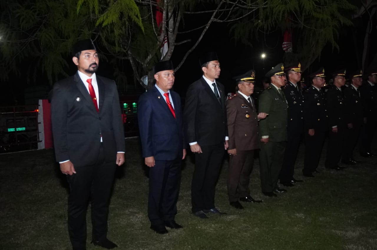 LUTIM, RRN – Bupati Luwu Timur, H. Budiman bersama Wakil Bupati, Mochammad Akbar Andi Leluasa menghadiri Apel Kehormatan dan Renungan Suci di Taman Makam Pahlawan (TMP) Malili, Desa Puncak Indah, Jumat (16/08/2024) malam.