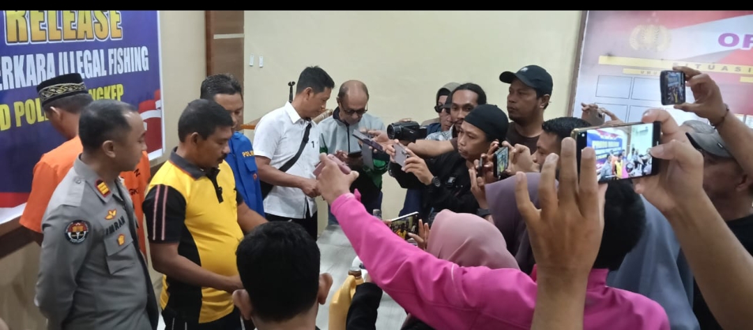 PANGKEP, RRN – Press release pengungkapan perkara ilegal fishing Sat Polairud Polres Pangkajene dan Kepulauan berlangsung di Aula Polres Pangkep pada Selasa 17 Juni 2025.