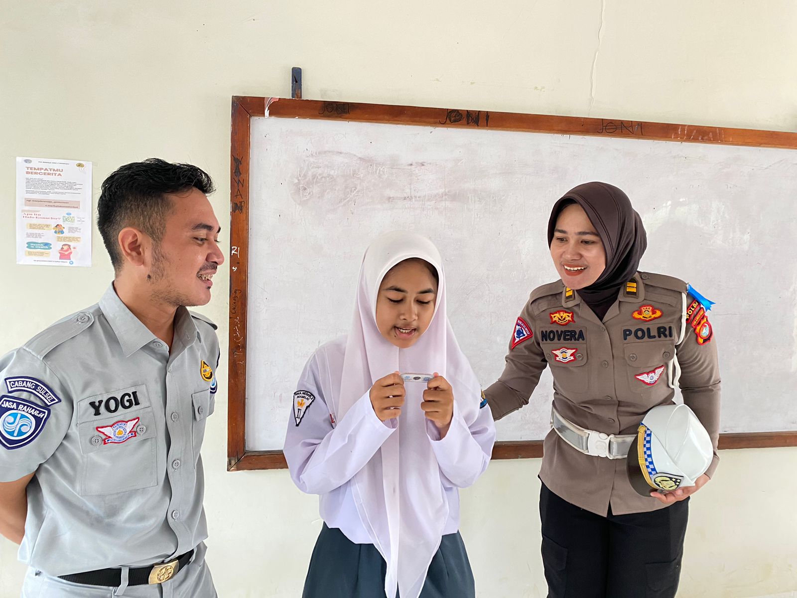 Lewat sosialisasi ini kita mengajak para siswa untuk menjadi pengendara yang bertanggung jawab dan mematuhi aturan lalu lintas demi keselamatan bersama, tuturnya.