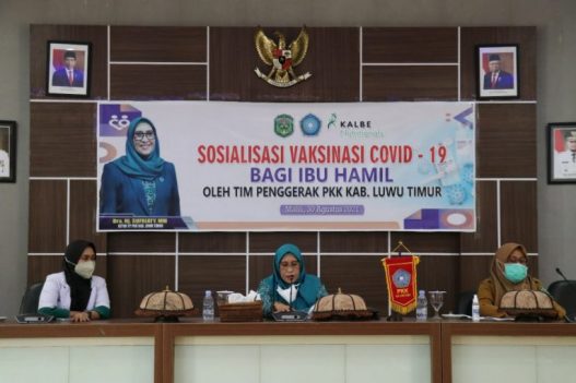 LUTIM, RRN – Tim Penggerak (TP) Pemberdayaan dan Kesejahteraan Keluarga (PKK) Kabupaten Luwu Timur (Lutim) menggelar sosialisasi sekaligus vaksinasi Covid-19 bagi ibu hamil, di Aula Rumah Jabatan Bupati, Senin (30/08/2021).