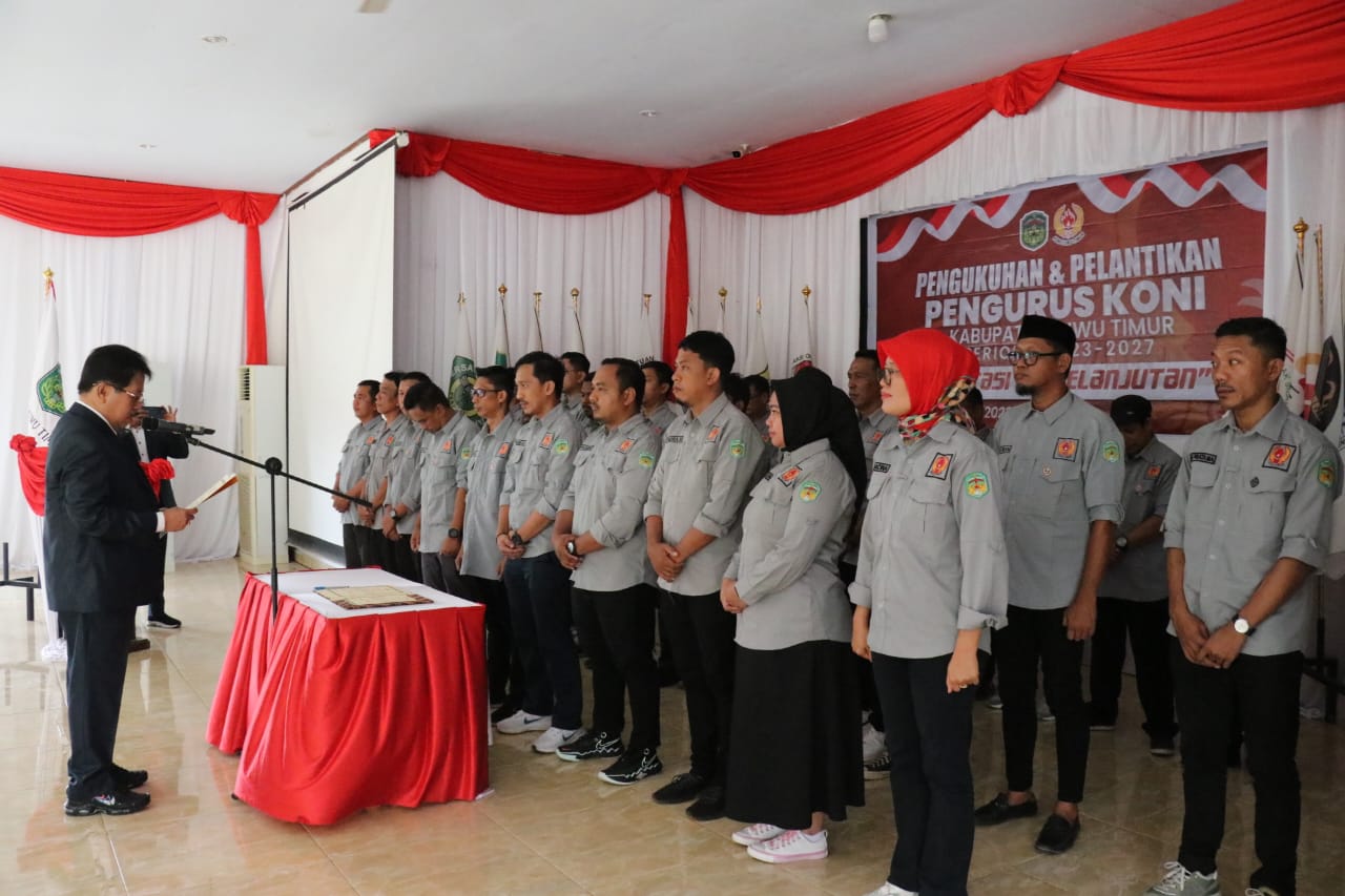 KONI Lutim masa bhakti 2023-2027 yang kini dipimpin oleh Agus Melas ini dilantik oleh Wakil Ketua Umum III KONI Sulsel, Prof. Dr. HM. Wasir Thalib, MS.