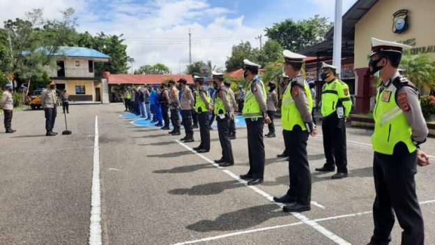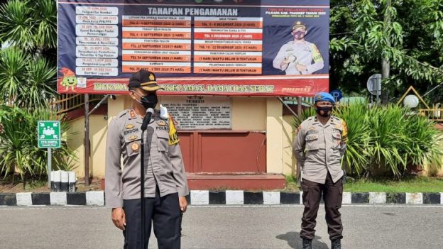 “Jaga kesehatan patuhi protokol kesehatan dalam mencegah penyebaran Covid-19, dan ingat Netralitas Polri harga mati jangan sampai ditemukan mendukung salah satu paslon, akan saya proses ,” ujar Kapolres