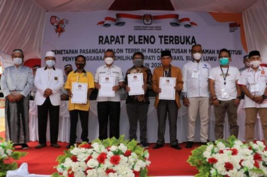 “Dengan digelarnya rapat pleno penetapan Paslon terpilih ini, tugas KPUD Kabupaten Luwu Timur telah selesai,” tambahnya.