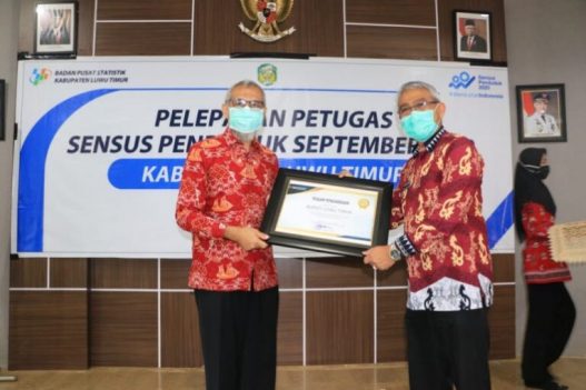 Penghargaan ini diberikan oleh Kepala BPS Provinsi Sulawesi Selatan, Yos Rudiansyah, Kamis (27/08/2020), di Aula Rumah Jabatan Bupati diacara pelepasan petugas lapangan sensus Penduduk 2020 September.