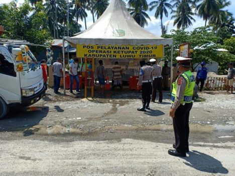 LUTIM, RRN—Guna memutus mata rantai penyebaran covid-19, polres luwu timur bersama instansi terkait siaga di pos pam yang berada beberapa titik perbatasan kabupaten luwu timur Salah satunya Kab. Luwu Timur (Sulsel) Dengan Kab. Poso (Sulteng), untuk mensosialisasikan larangan mudik kepada masyarakat yang melintasi di Pos Pam Ops Ketupat 2020 (Pos Tambangan), Selasa (12/05/2020).
