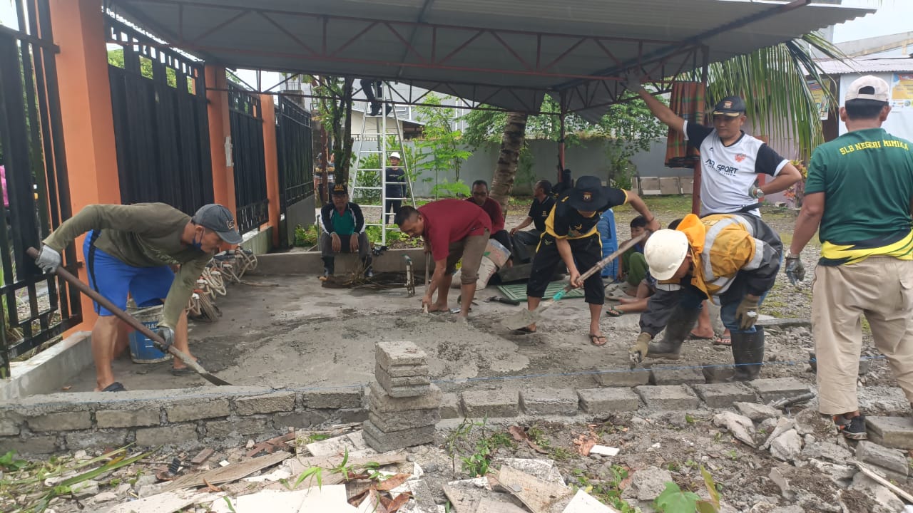 Selain membersihkan lingkungan masjid, warga LDII juga turut memperbaiki jalan setapak di sekitar area masjid.