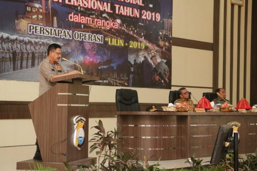 SULSEL, RRN—Kapolda Sulsel Irjen Pol. Drs. Mas Guntur La Upe, Selasa (17/12/2019) memimpin Rapat Koordinasi Lintas Sektoral Operasi Lilin 2019. Kegiatan ini dalam rangka pengamanan Natal 2019 dan Tahun Baru 2020.