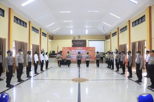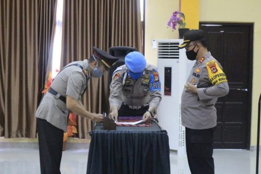 BANTAENG, RRN—Kapolres Bantaeng AKBP Wawan Sumantri ST,SH,MH memimpin Upacara Pelantikan dan Serah Terima Jabatan Waka Polres Bnataeng, Kabag Ren, Kasat Intelkam dan Kapolsek Pajukang, Rabu(10/6/2020) di Aula Endra Dharmalaksana 99 Polres Bantaeng jalan Sungai bialo bantaeng.
