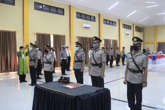Upacara Pelantikan Pejabat Polres dihadiri hanya penjabat utama Polres Bantaeng dengan mematuhi protokol kesehatan pencegahan covid-19.