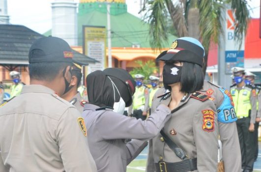 Kegiatan upacara Serah Terima Jabatan Kasat lantas dilaksanakan secara sederhana dan khidmat dengan posisi pasukan jarak 1 meter.