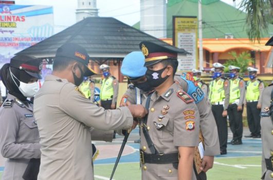 LUTIM, RRN—Upacara Sertijab Kasat Lantas Polres Luwu Timur Dari AKP Andi Ali Surya S.Ik Kepada IPTU Desy Ayu Dwi Putri S.Ik giat upacara ini dipimpin langsung oleh kapolres luwu timur AKBP Indratmoko S.ik yang bertempat di halaman mako polres luwu timur, Jumat (12/06/2020) Pukul 08.15 WITA.