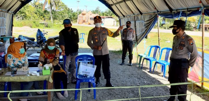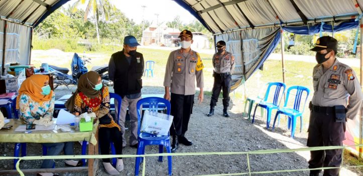PASANGKAYU, RRN – Kapolres Mamuju Utara Akbp Leo H.Siagian S.I.K,M.Sc mengecek personil yang bertugas di Pos Pengamanan perbatasan Mamuju tengah (Mateng)- Pasangkayu. Pengecekan tersebut dilaksanakan secara mendadak dipagi hari untuk melihat kesiap siagaan personil dipos pam benggaulu, Rabu ( 6/5/2020) pagi.