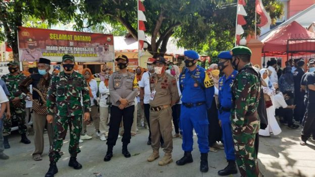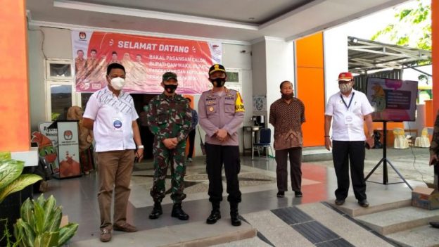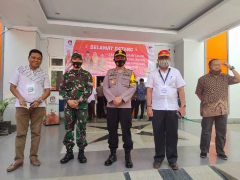 PANGKEP, RRN – Kapolres Pangkep AKBP Ibrahim Aji S.I.K bersama Dandim 1421 Pangkep Letkol Inf. Adi Sabarudin memantau langsung proses pendaftaran Bakal pasangan calon (paslon) bupati dan wakil bupati Kabupaten Pangkep yang berlangsung di Kantor Komisi Pemilihan Umum (KPU) Pangkep Kel. Tumampua Kec. Pangkajene. Jumat (04/09/2020) siang.