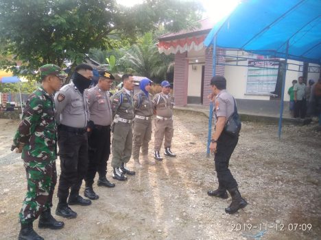 PASANGKAYU, RRN – Kasat Sabhara Polres Mamuju Utara Akp Sukaryono SH memberikan APP kepada personil Polri, Tni dan Satpol PP serta Linmas yang bertugas berjaga di Tps Desa Kasano Kec.Baras Kab.Pasangkayu sebelum pelaksanaan Pemilihan Kepala desa dilakukan, Selasa (12/11/2019) pagi.