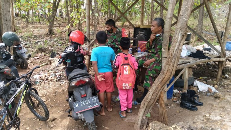 PAMEKASAN, RRN – keberadaan Satgas TMMD ke 112 Kodim 0826/Pamekasan memberi nuansa tersendiri bagi anak-anak di Dusun Desa Rangperang Dejeh Kec. Proppo, pada saat pulang sekolah mereka asyik bermain sepeda sambil melihat Satgas TMMD bekerja.
