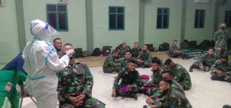 Sebelum personel Satuan Tugas (Satgas) TMMD ke-112 memasuki Lokasi TMMD di Desa Rangperang Dejeh Personel melaksakan Test Swab Antigen, hal itu dilakukan oleh Dandim 0826/Pamekasan Letkol Inf Tejo Baskoro selaku Dansatgas TMMD Ke 112 dalam rangka mengantisipasi dan mencegah penyebaran Covid-19, ungkap Pasiter.
