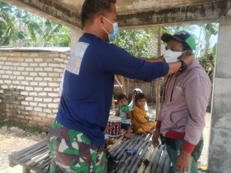 Cegah Covid-19, Satgas TMMD Membagikan Masker Kepada Warga, pelaksanaan TMMD masih dalam situasi dan kondisi pandemi Covid-19 perlu selalu diterapkan Prokes Covid-19. Sehingga seluruh prajurit TNI yang tergabung pelaksanaan TMMD ke-112 di Desa Rangperang Kec. Proppo Kab. Pamekasan alhamdulilah semua Personel Satgas sebelum masuk ke Sasaran sudah dilakukan Swep Antigen.