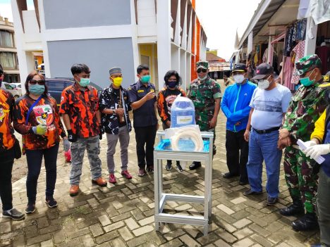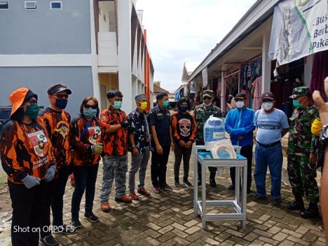 LUTIM, RRN—Ketua AMPI Luwu timur Kamal Rasyid bersama Ormas pemuda pancasila Luwu Timur melakukan aksi sosial di kawasan Pasar Soroako Kecamatan Nuha, Aksi sosial yang dilakukan berupa pembagian masker dan brosur bagi para pengunjung pasar, jumat (03/03/2020).