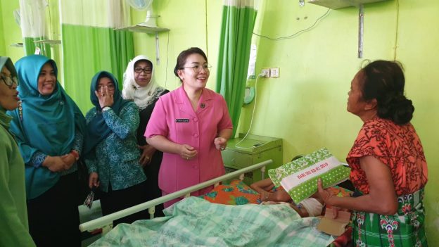 SINJAI, RRN – Ketua Bhayangkari Cabang Sinjai Ny. Yovita Sebpril Sesa melaksanakan kunjungan sosial di Rumah Sakit Umum Daerah (RSUD) Sinjai, Kamis (19/12/2019).