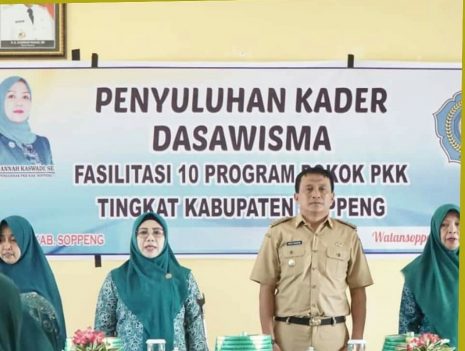 SOPPENG, RRB—-Ketua TP PKK Kabupaten Soppeng Ny. Hj. Nurjannah Kaswadi, SE menghadiri kegiatan Penyuluhan Kader Dasawisma, di Kecamatan Ganra Kabupaten Soppeng, Selasa (8/10/2019).