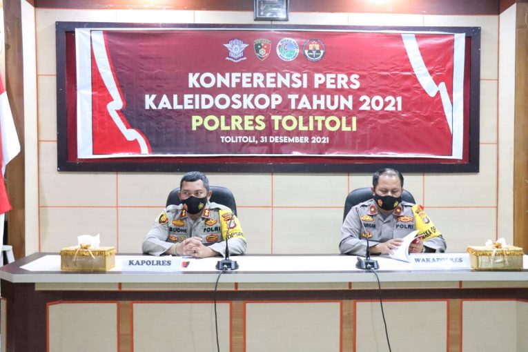 Demikian yang disampaikan Kapolres Tolitoli AKBP Budhi Batara Pratidina SH SIK MH kepada sejumlah awak media saat melaksanakan konferensi pers akhir tahun 2021 bertempat di Aula Parama Satwika Polres Tolitoli, Jumat (31/12/2021).