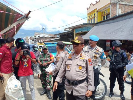 Kapolda Sulteng Irjen Polisi Drs. Syafril Nursal, SH, MH didampingi Kabidhumas Kombes Polisi Didik Supranoto, SIK dan Kapolres Palu Akbo Moch. Soleh, SIK, S.H, M.H kembali turun ke lapangan dengan menyasar Pasar Masomba dan pertokoan di jalan Hasannudin Palu, Selasa (24/3/2020).