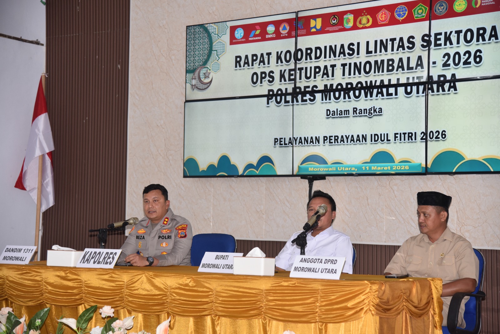 MORUT, RRN – Kepolisian Resor Morowali Utara menggelar rapat koordinasi (rakor) lintas sektoral dalam rangka menghadapi Operasi Ketupat Tinombala-2026. Sebanyak 221 personel gabungqn diturunkan untuk mengawal masyarakat yang akan melaksanakan mudik Lebaran 2026 di wilayah Kabupaten Morowali Utara. Rabu (11/3/2026)