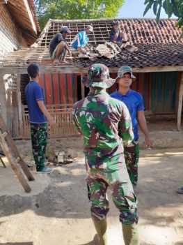 Salah satu wujud nyata yang dilakukan Anggota Satgas TMMD Kodim 0826/Pamekasan yakni melakukan perbaikan rumah warga Ibu Ama, warga Dsn.Nyabrangan desa Rangperang daya Kec. Proppo Kab. Pamekasan yang saat ini memasuki pembongkaran kerangka atap rumah.