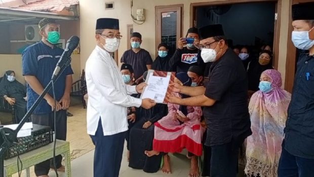 Setelah menyampaikan sambutannya, Bahri Suli menyerahkan akta kematian Ibu Andi Fatma kepada A. Habil Unru selaku suami dan perwakilan keluarga sebelum dimakamkan di Pekuburan Umum Trans Puncak Indah, Malili.