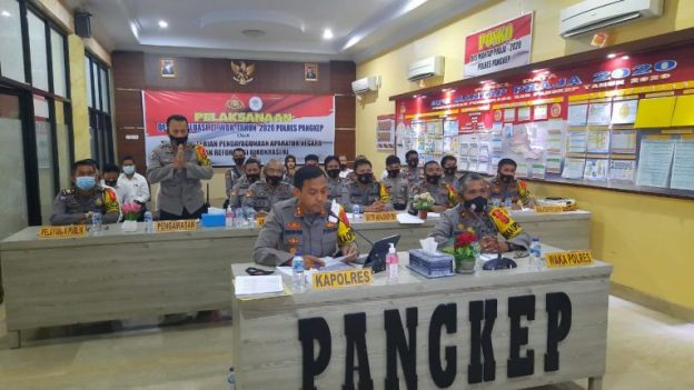 Dalam evaluasi menuju zona integritas 2020 yang dilakukan oleh kementerian PAN RB melalui Zoom Meeting di Aula Andi Mappe Polres Pangkep, Senin (23/11/20).