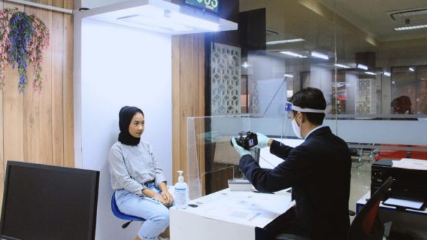 Setelah itu juga ada pemeriksaan suhu tubuh, dengan menggunakan thermogun, ketentuan suhu badan maksimal 37,5°C, lalu memasuki bilik sterilisasi dan pengunjung diminta menjaga jarak setidaknya 1-2 meter di ruang tunggu yang telah disediakan dengan menerapkan physical distancing. Pengunjung juga wajib menggunakan handsanitizer sebelum dan sesudah melakukan pengambilan biometrik.