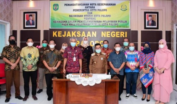 KOTA PALOPO, RRN– Penandatanganan Nota Kesepahaman antara Pemerintah Kota Palopo dan Kejaksaan Negeri Kota Palopo tentang kerjasama dalam penyelenggaraan pelayanan publik pada Mall Pelayanan Publik Kota Palopo, yang di selenggarakan di Ruang Rapat Kejaksaan Negeri Palopo, Jumat 7 Mei 2021.