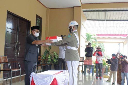 LUTIM, RRN—Bupati Luwu Timur, H Budiman kembali menerima Bendera Merah Putih usai dibentangkan dibawah laut Tanjung Parasulu Desa Harapan Kecamatan Malili, Senin (16/08/2021) di Rujab Bupati. Kegiatan bentang bendera merah putih di dalam laut ini masih merupakan rangkaian menyambut Hari Ulang Tahun Republik Indonesia ke 76.