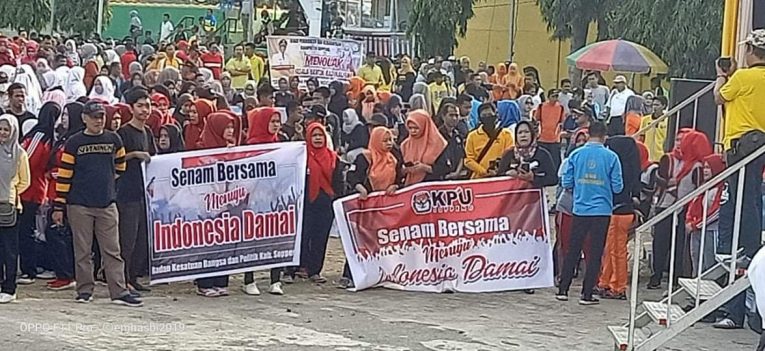 SOPPENG, RRN —- Pemkab bersama Polres Soppeng laksanakan kegiatan Senam Bersama Menuju Indonesia Damai, dengan tema ” Mari Perangi Paham Terorisme Dan Radikalisme” bertempat dilapangan Gasis Watansoppeng, Jumat (18/10/2019).