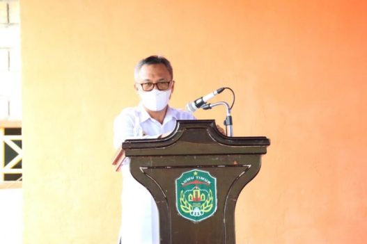Mengawali sambutannya, Bupati Luwu Timur, H. Budiman mengingatkan pentingnya menerapkan protokol kesehatan. Mengingat saat ini ada varian terbaru Covid-19 yang lebih berbahaya. “Jadi tidak boleh ‘macapa’ harus tetap kita waspada. Menaati protokol kesehatan itu artinya kita saling menyayangi dan saling melindungi,” katanya.